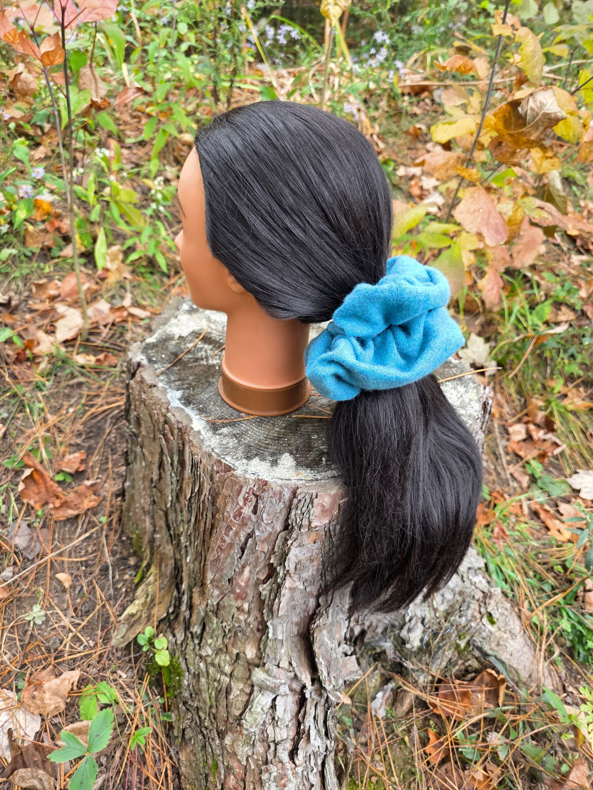Made from upcycled 100% Cashmere Sweaters, these super soft scrunchies are sized to work well with even super thick hair.