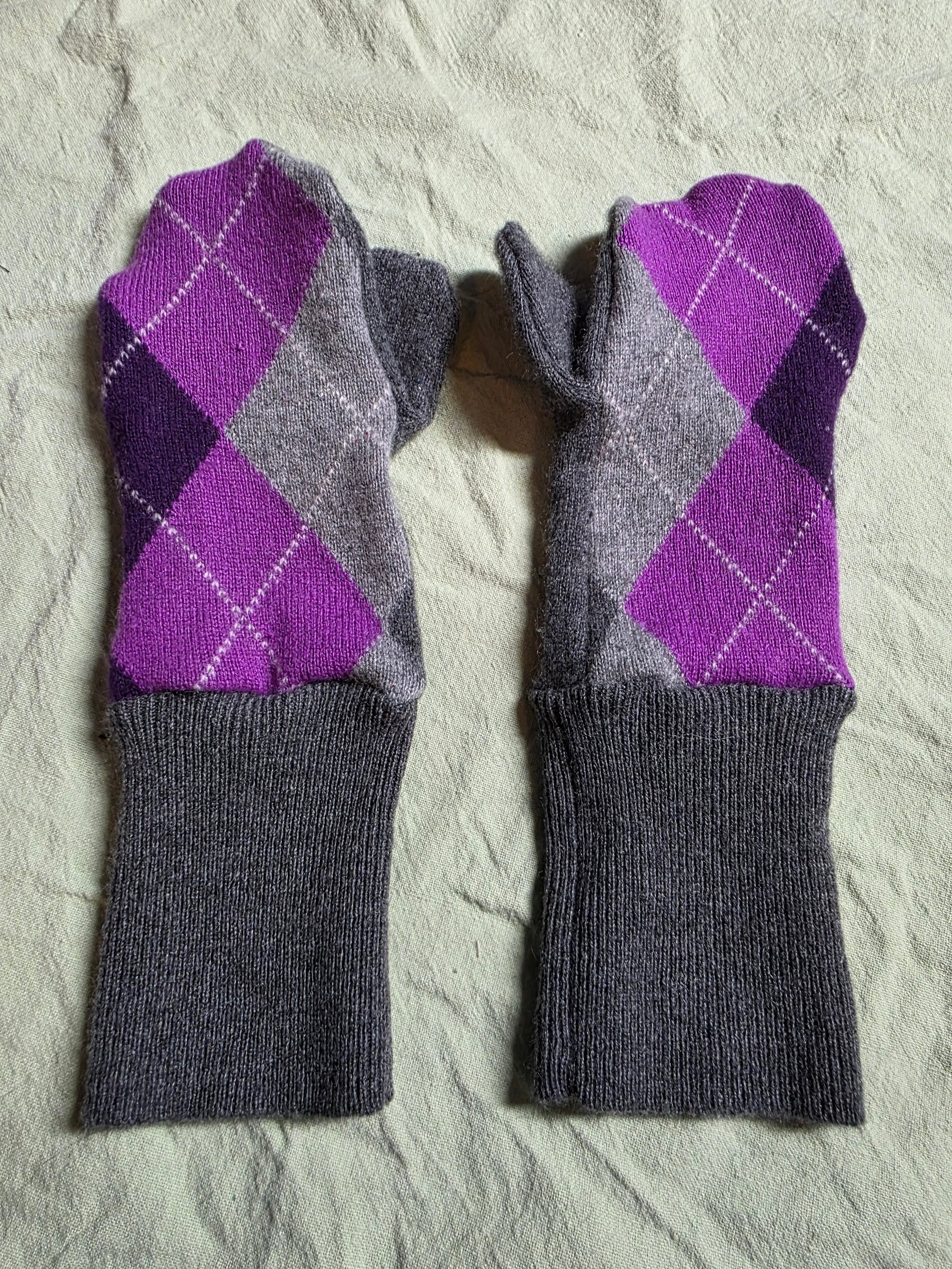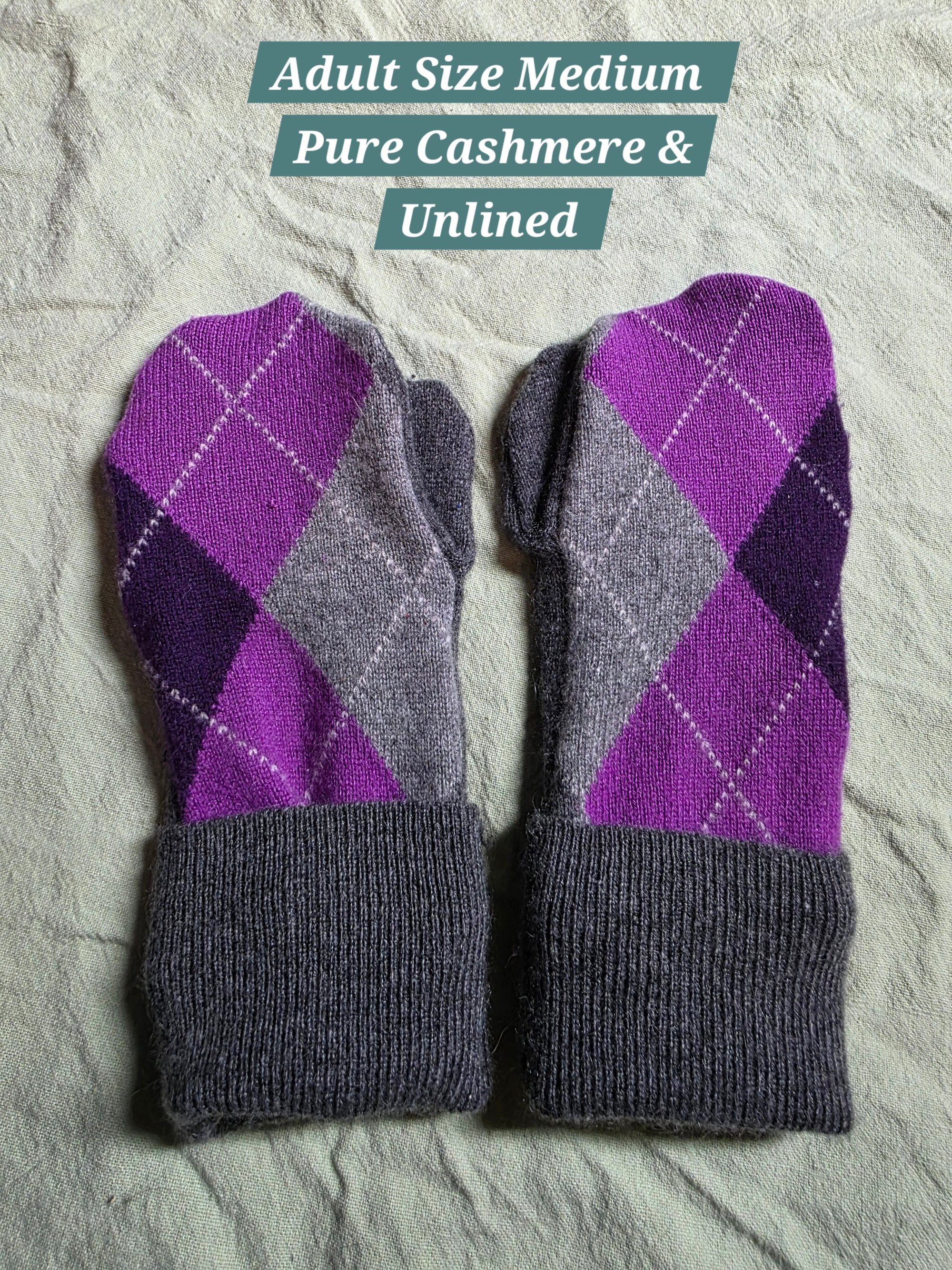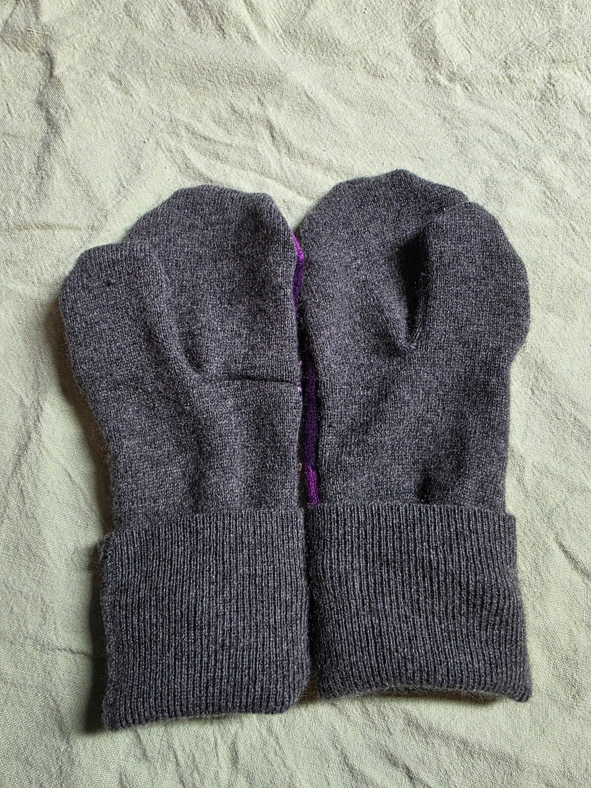 Cashmere Upcycled Mittens- Adult Medium- Gray & Purple