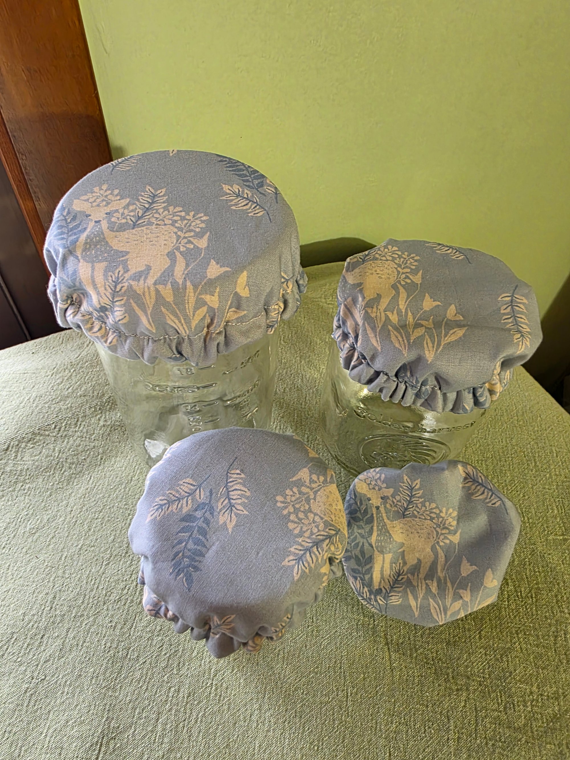 Certified Organic Cotton Jar Covers in Fawns & Ferns