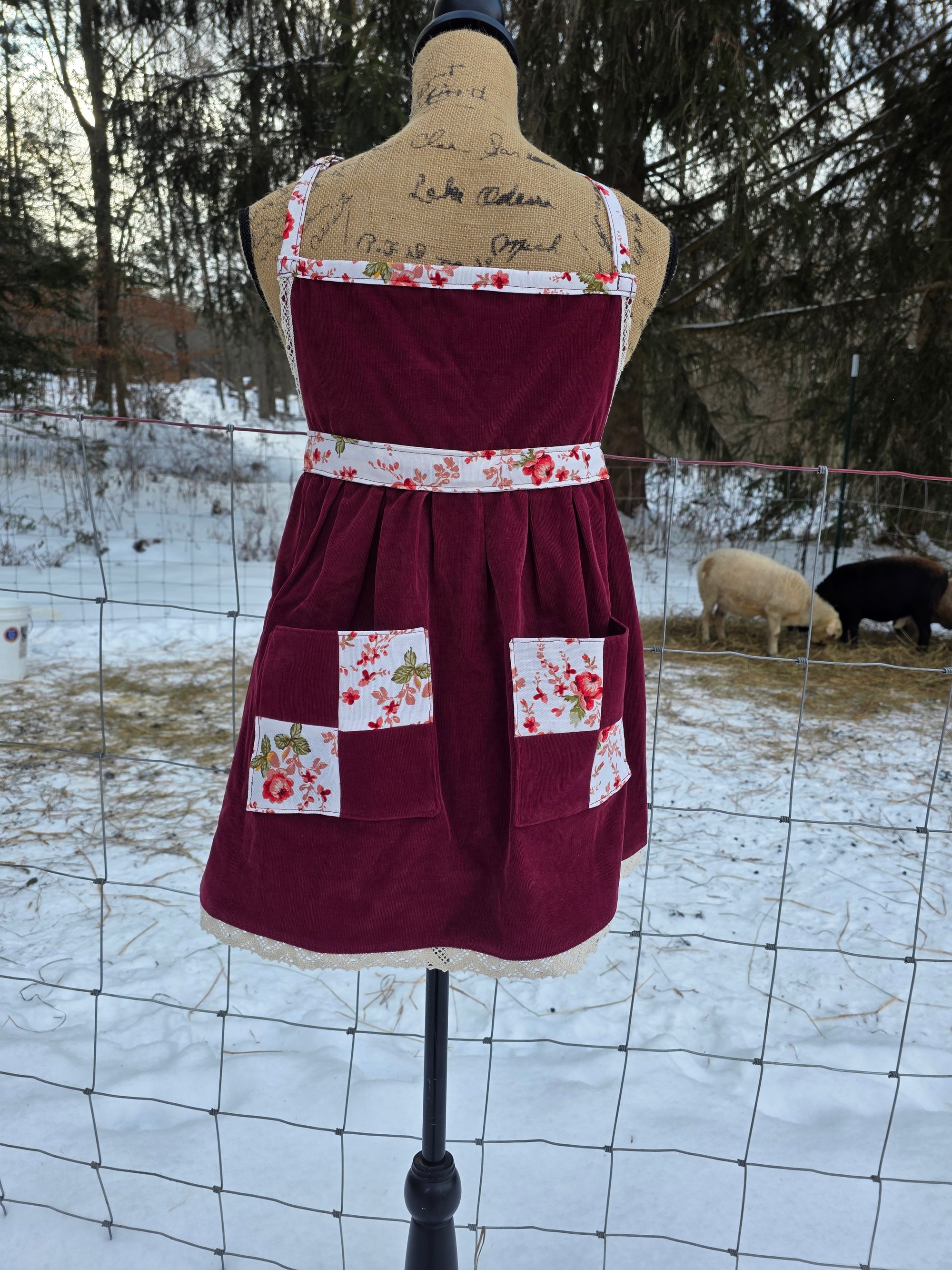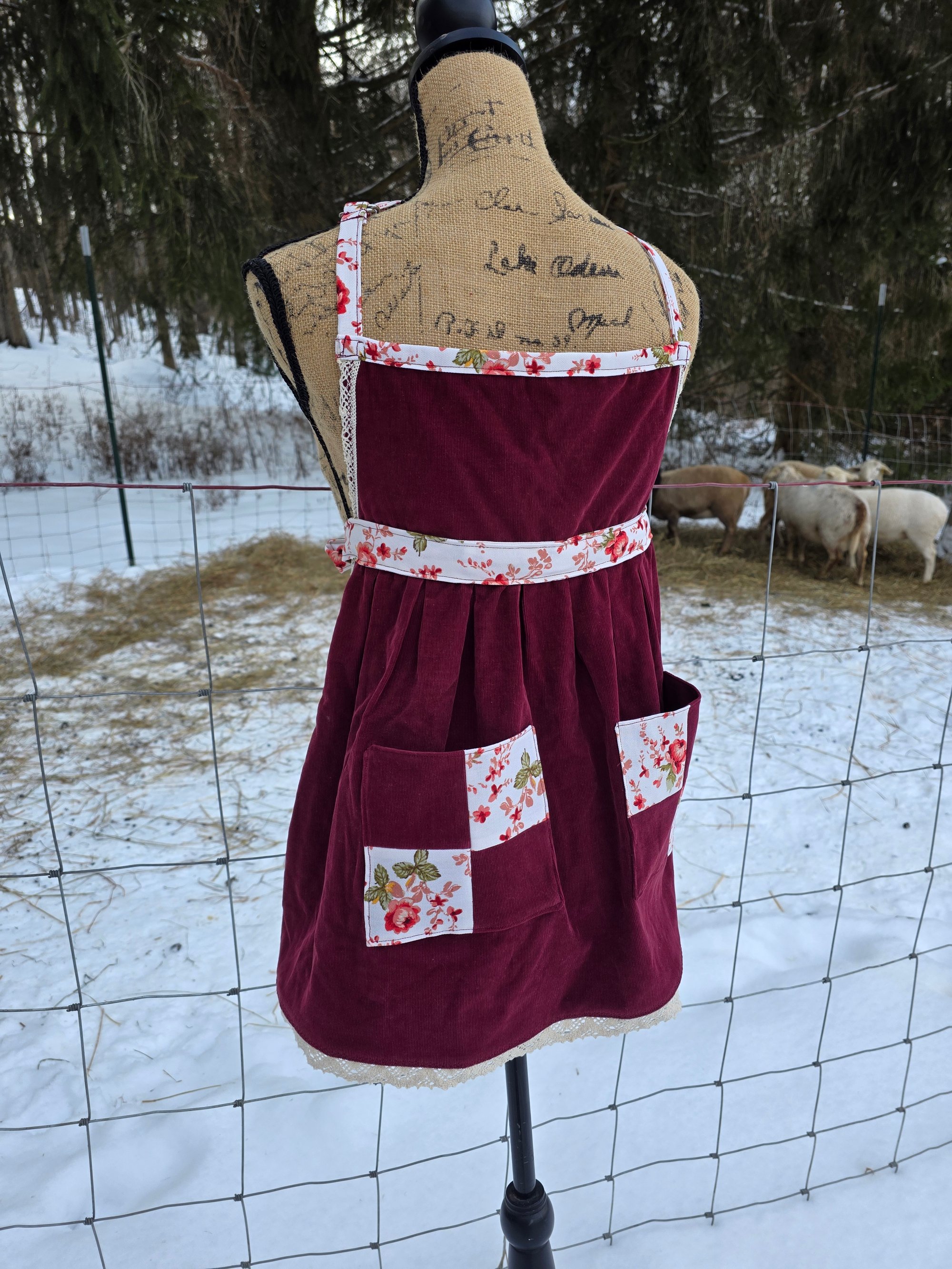 Child Sized Upcycled Cotton Patchwork Apron- Burgundy