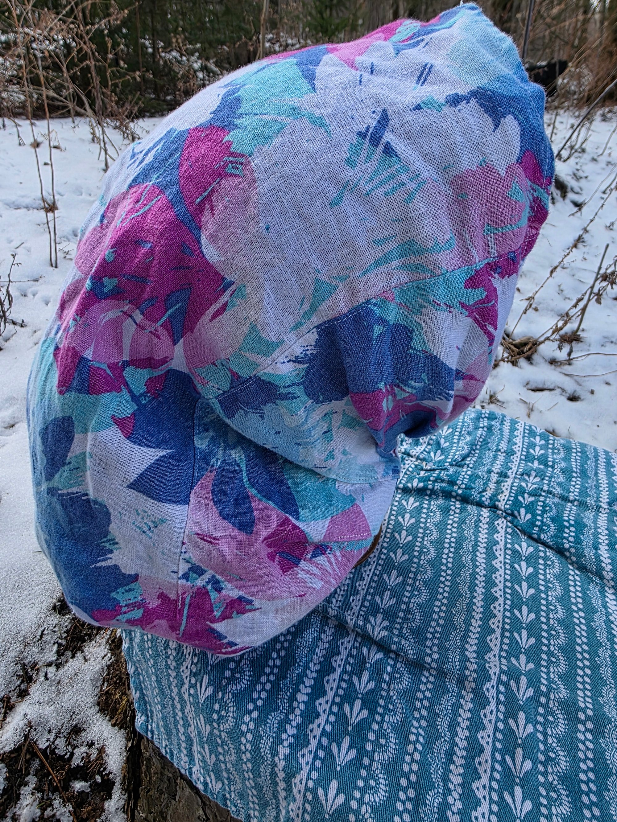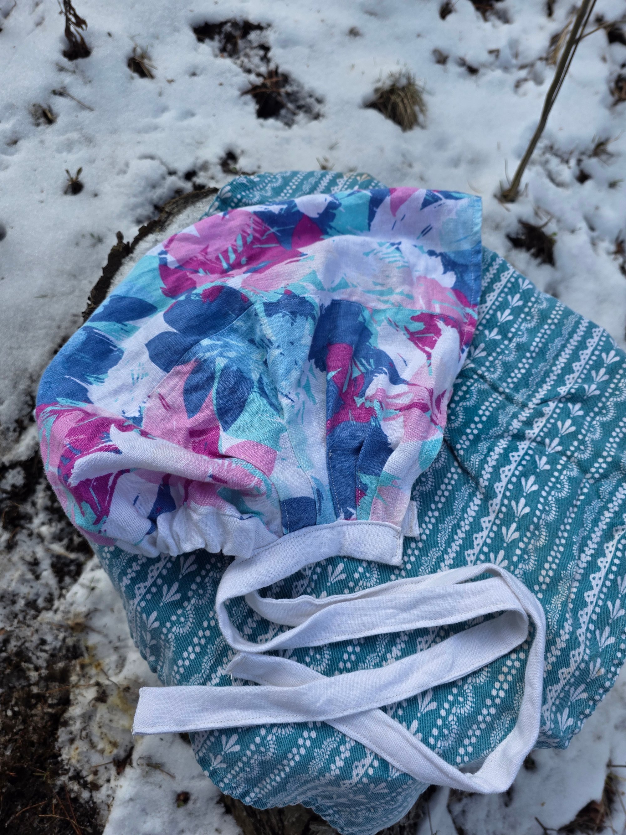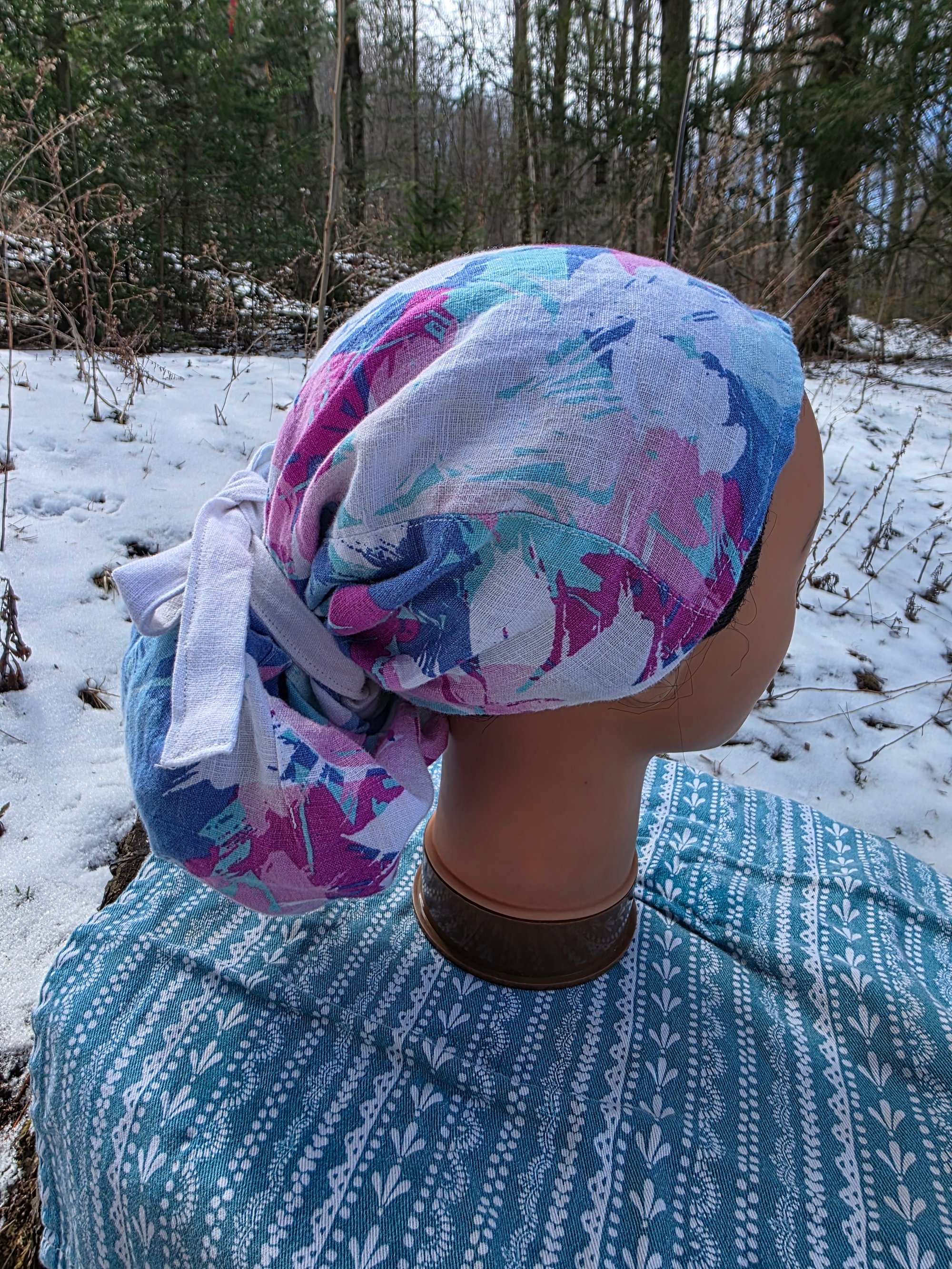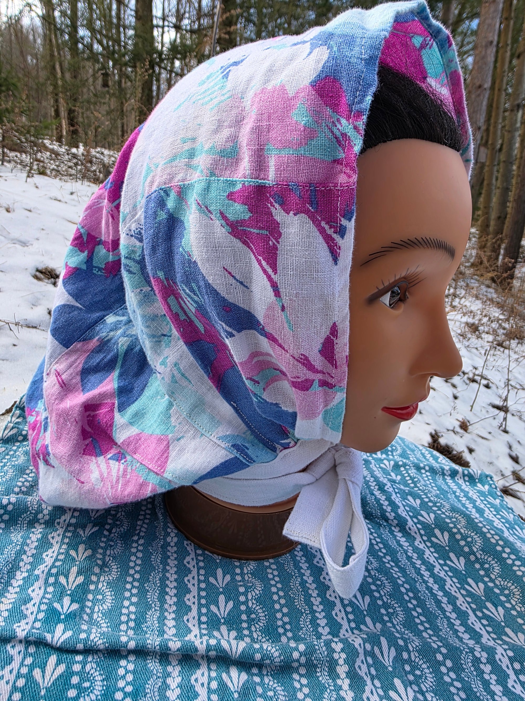 Five Option Bonnet Snood in Upcycled Linen- Paradise- L-XXL
