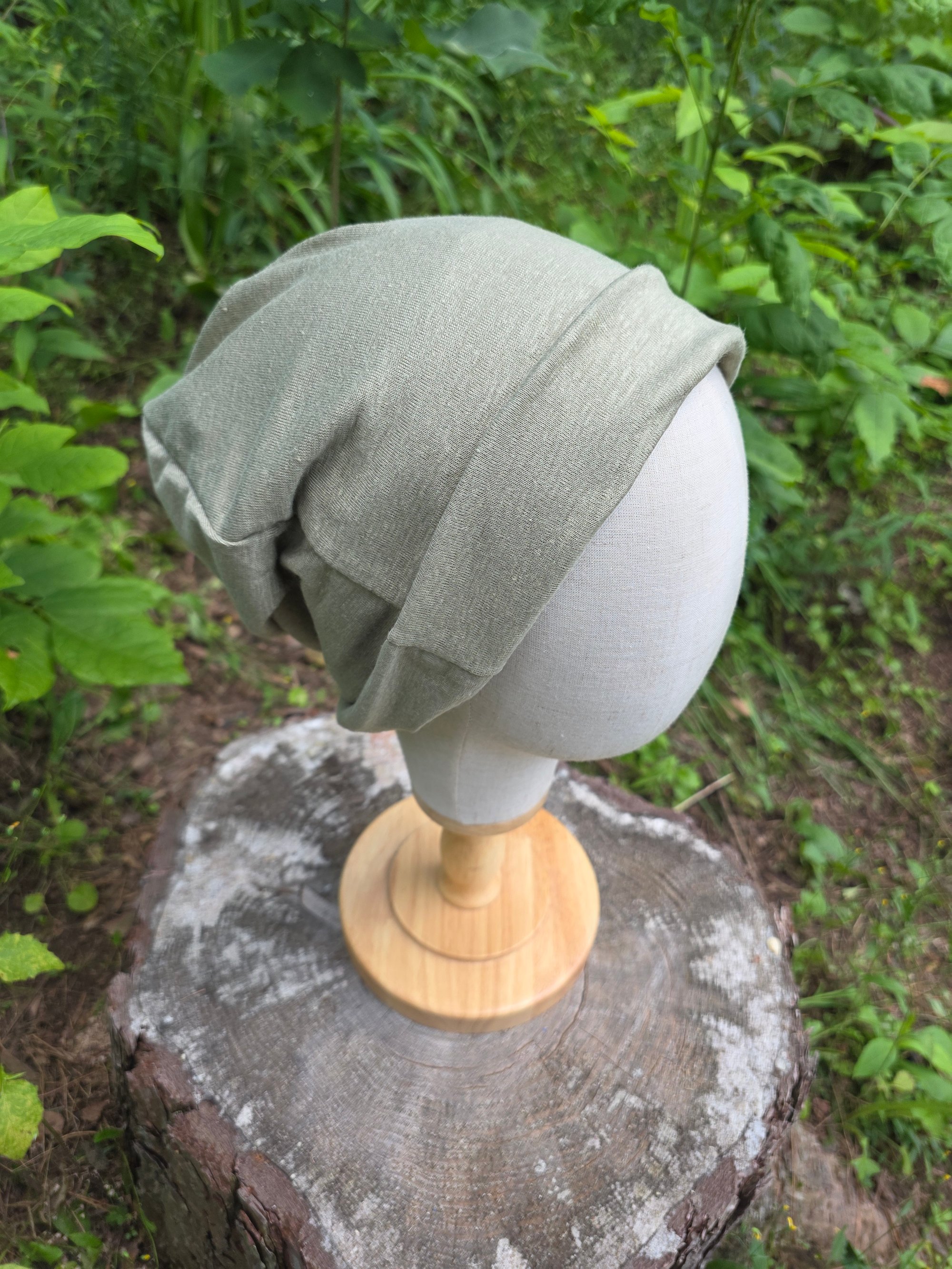Made from 100% Linen Knit fabric, doubled- roll-able brim.