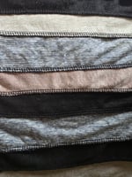 Made from soft and knit 100% Linen Fabric, with serged edges. The sizing varies slightly, 6.5" by 10" with miniscule variations.