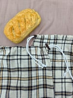 Made from 100% Linen Fabric, 100% Cotton Cord, Wood Drawstring Toggles for snug closure and ease of use.