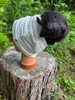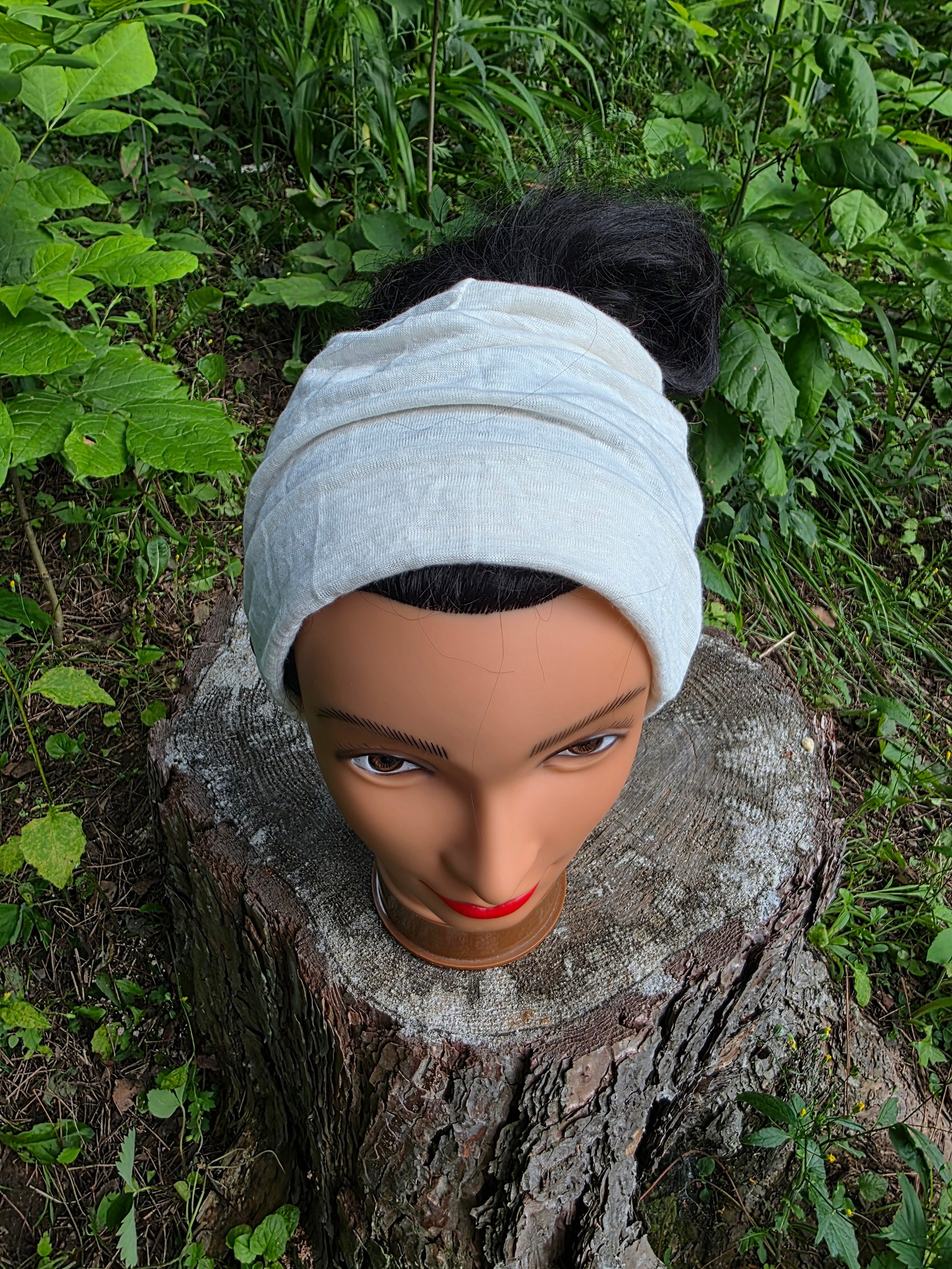Made from 100% knit linen fabric, these hats have an elasticized hole at the top for your pony, braid, etc. You simply put your hand down through the ponytail opening, pull your hair up through, then arrange the hat in the style that pleases you. The snap can be released for more coverage on that side, and you can be creative- as there really are multiple ways to style this hat. The snaps are hypoallergenic diaper grade plastic.