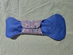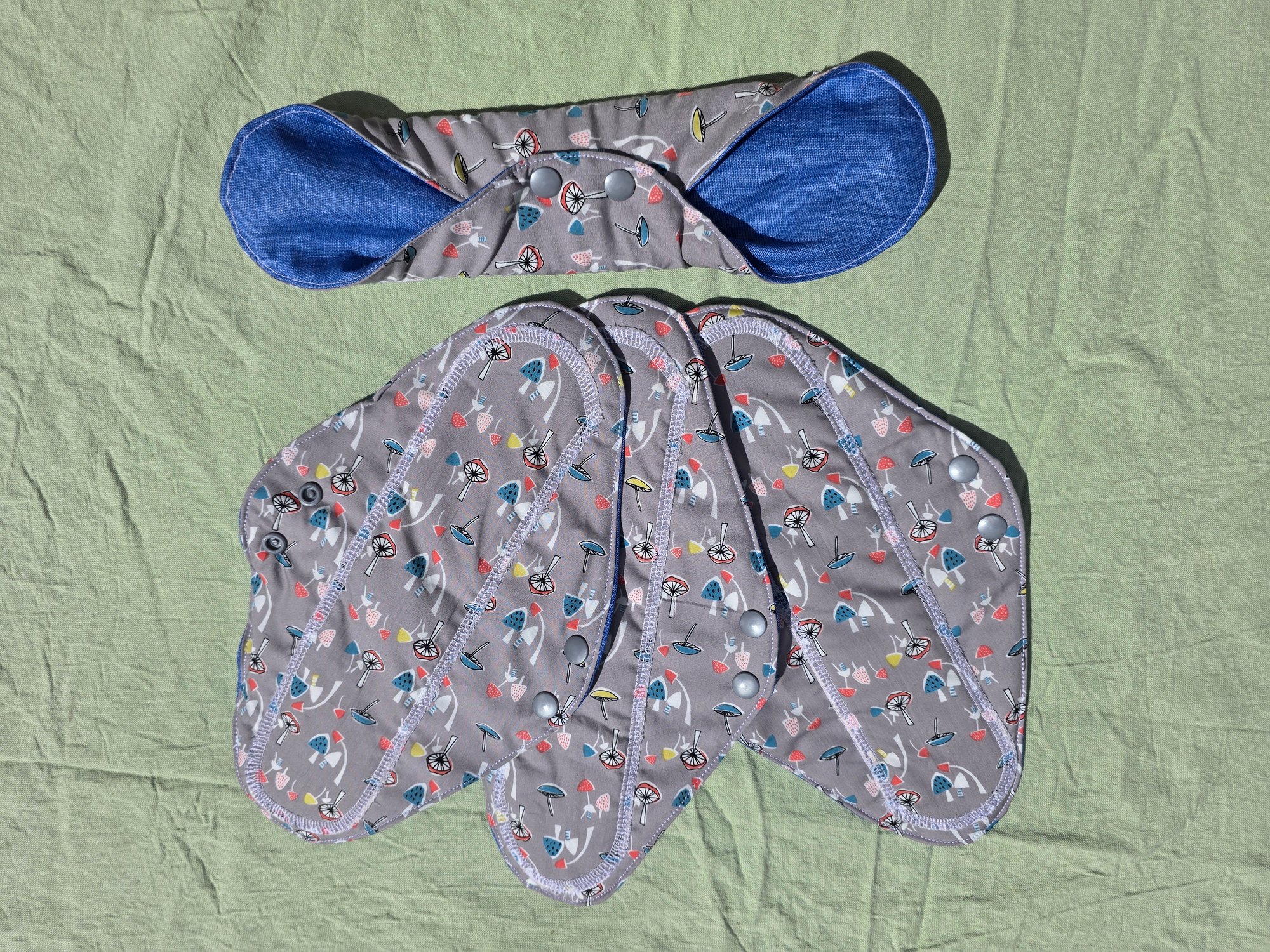 Made with a beautiful 100% certified organic cotton fabric by Monaluna, these pads feature 100%Natural Cotton Absorbency Layers, and a leak proof backing made of 100% flax linen that has been coated on one side with polyurethane. This set includes four regular absorbency pads that are 11.5" long.