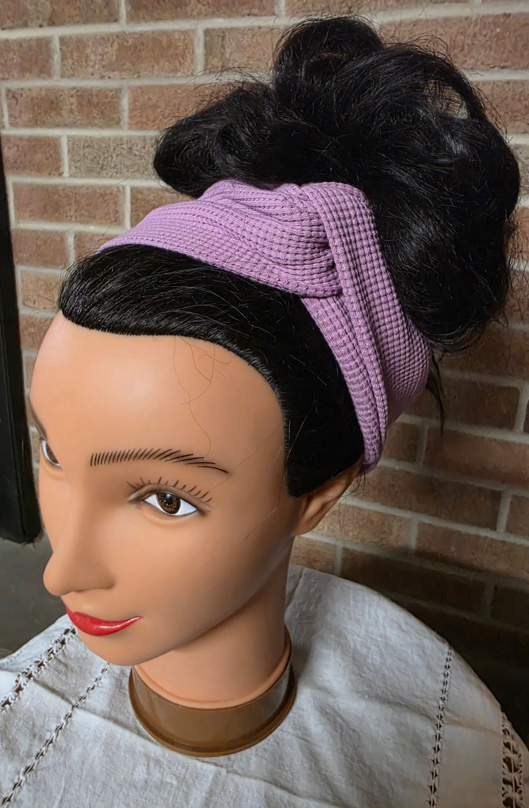 Organic Cotton Twist Headband in Lavender Waffle Knit