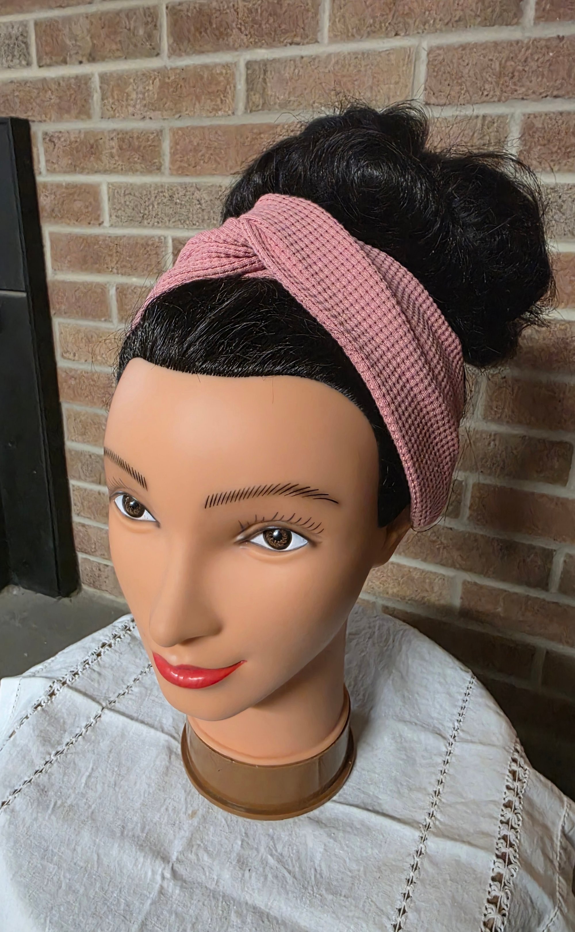 Organic Cotton Twist Headband in Rose Waffle Knit