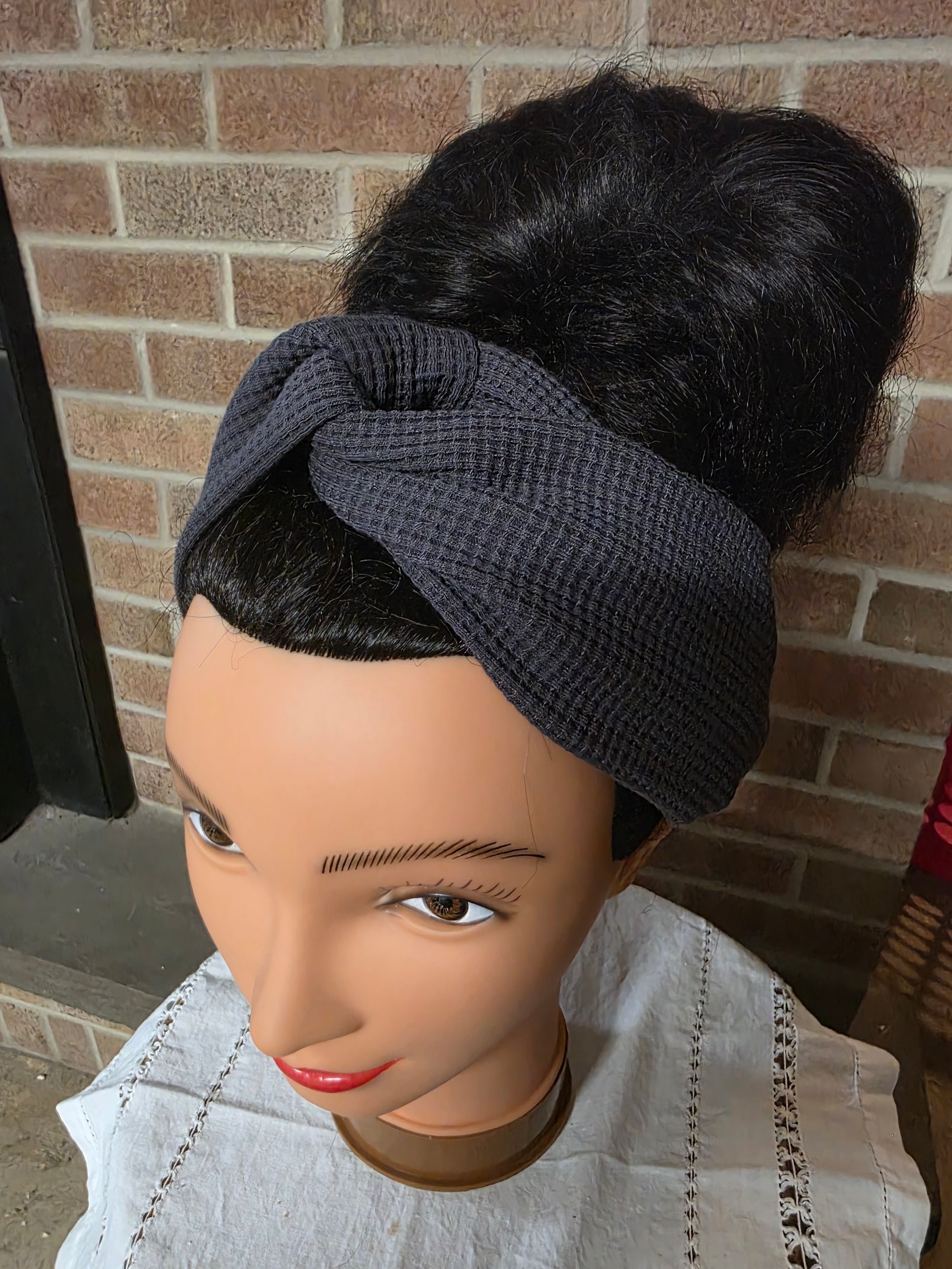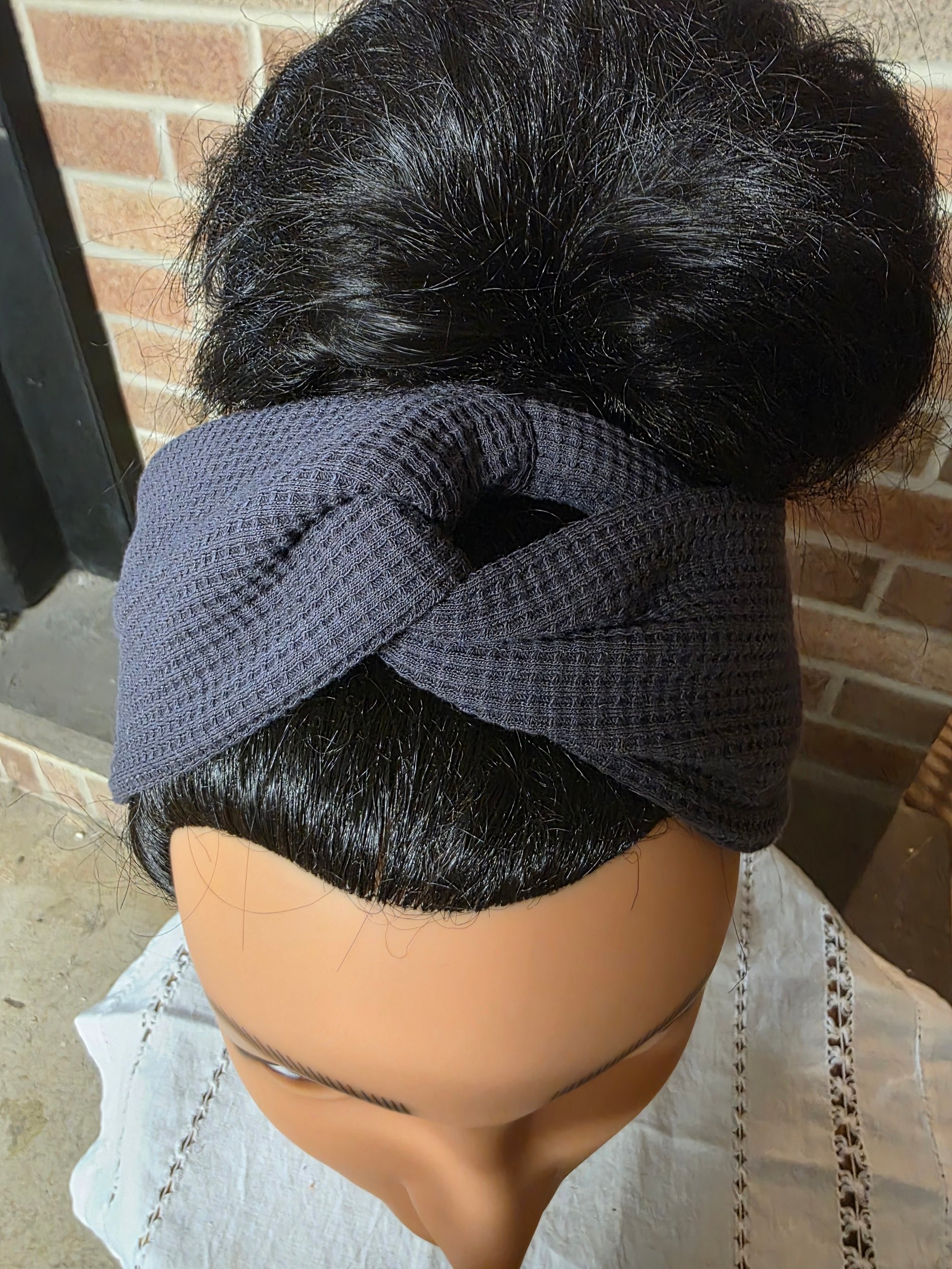 Organic Cotton Twist Headband in Slate Waffle Knit