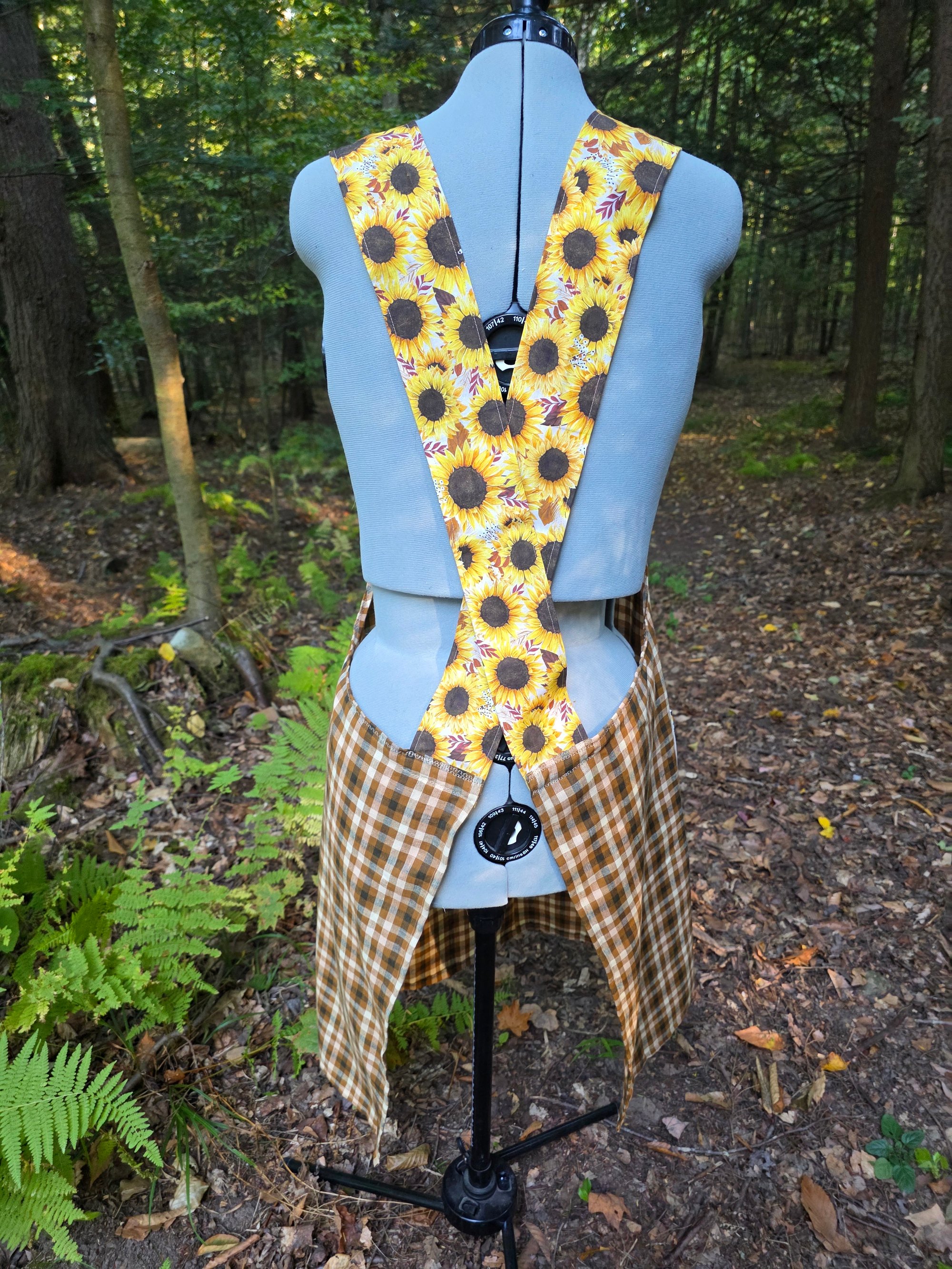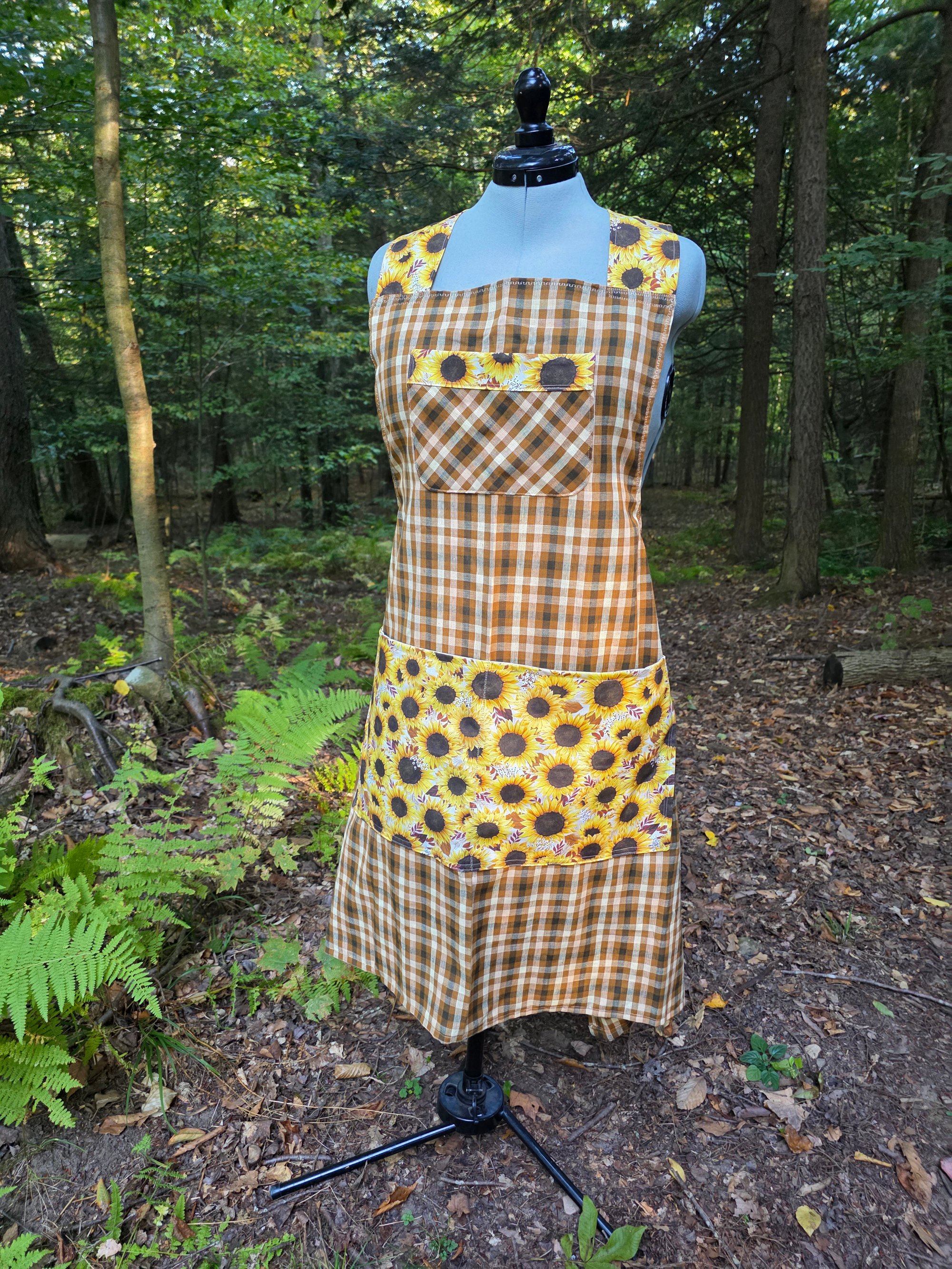 Made from all 100% Cotton fabrics, this apron is designed to fit XL through 3XL ladies. Three roomy pockets in front to help you get your tasks done while looking bright and lovely!
