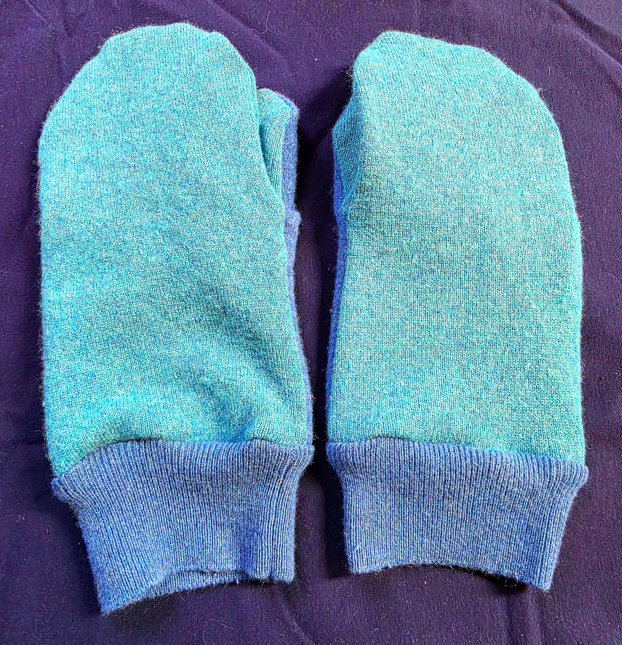 Pure Cashmere Upcycled Adult Mittens- L-XL- Aqua & Blue