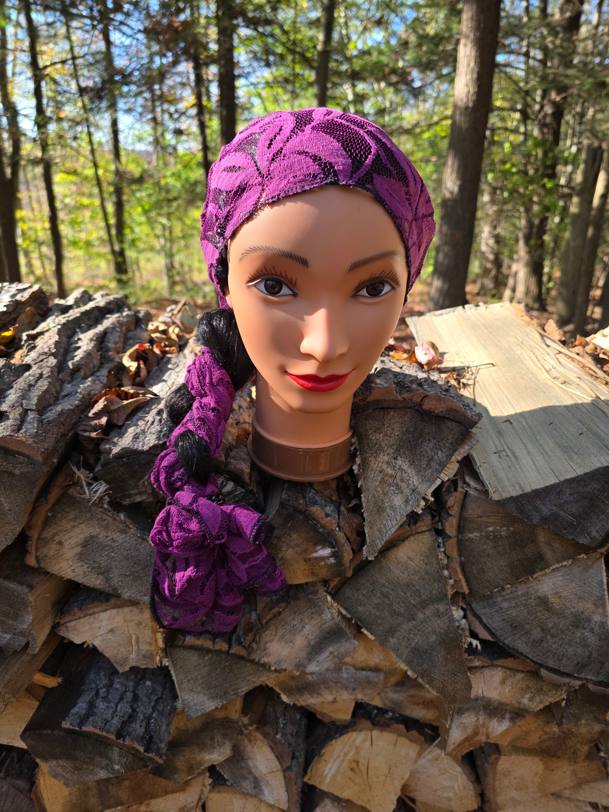 Made from 100% cotton lace, this non stretchy rectangular scarf measures 53" long and 15.5" wide, and has serged edges in black thread.