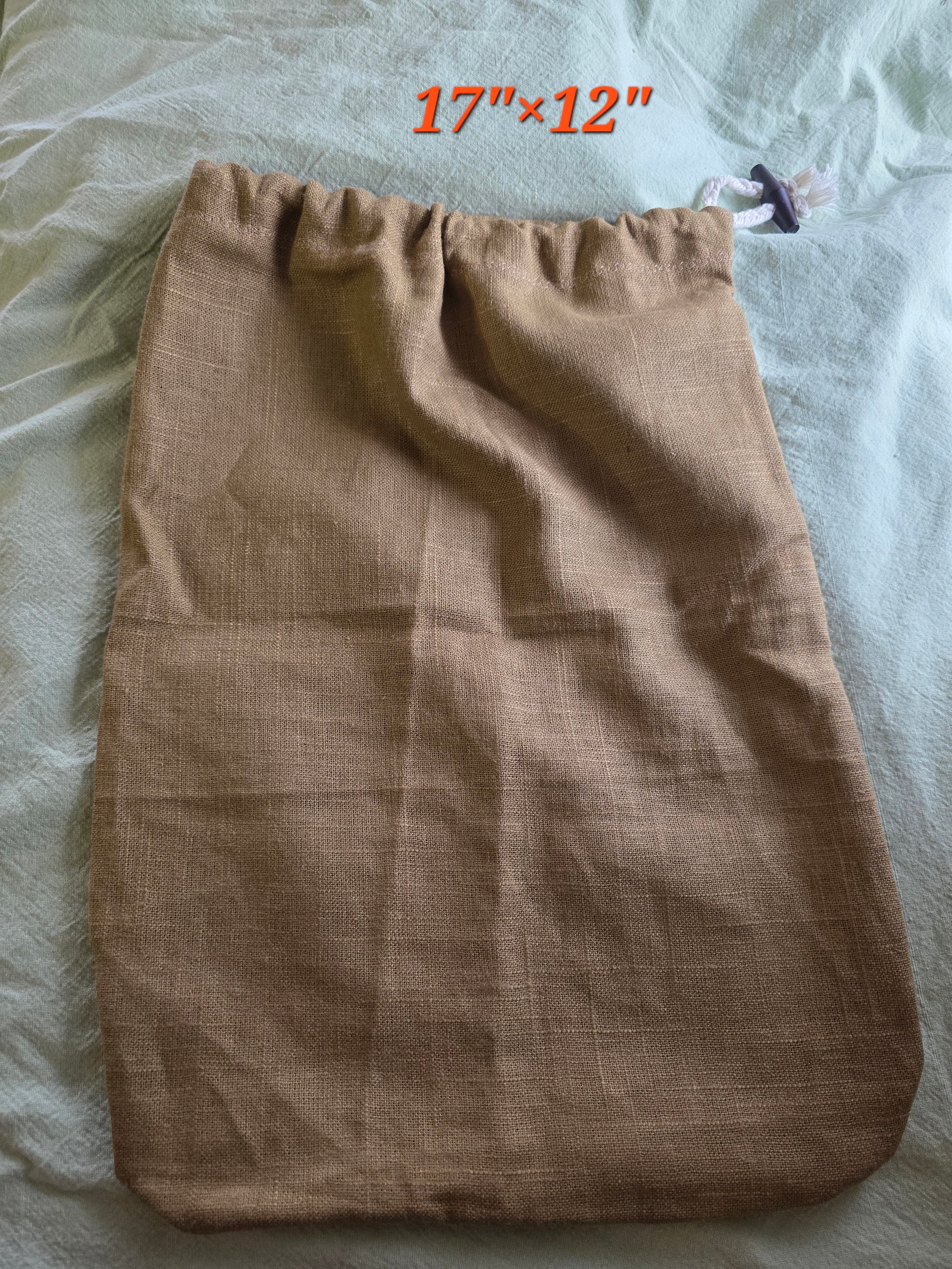 Made from heavier weight 100% linen fabric, natural cotton drawstring cord, and wood toggle