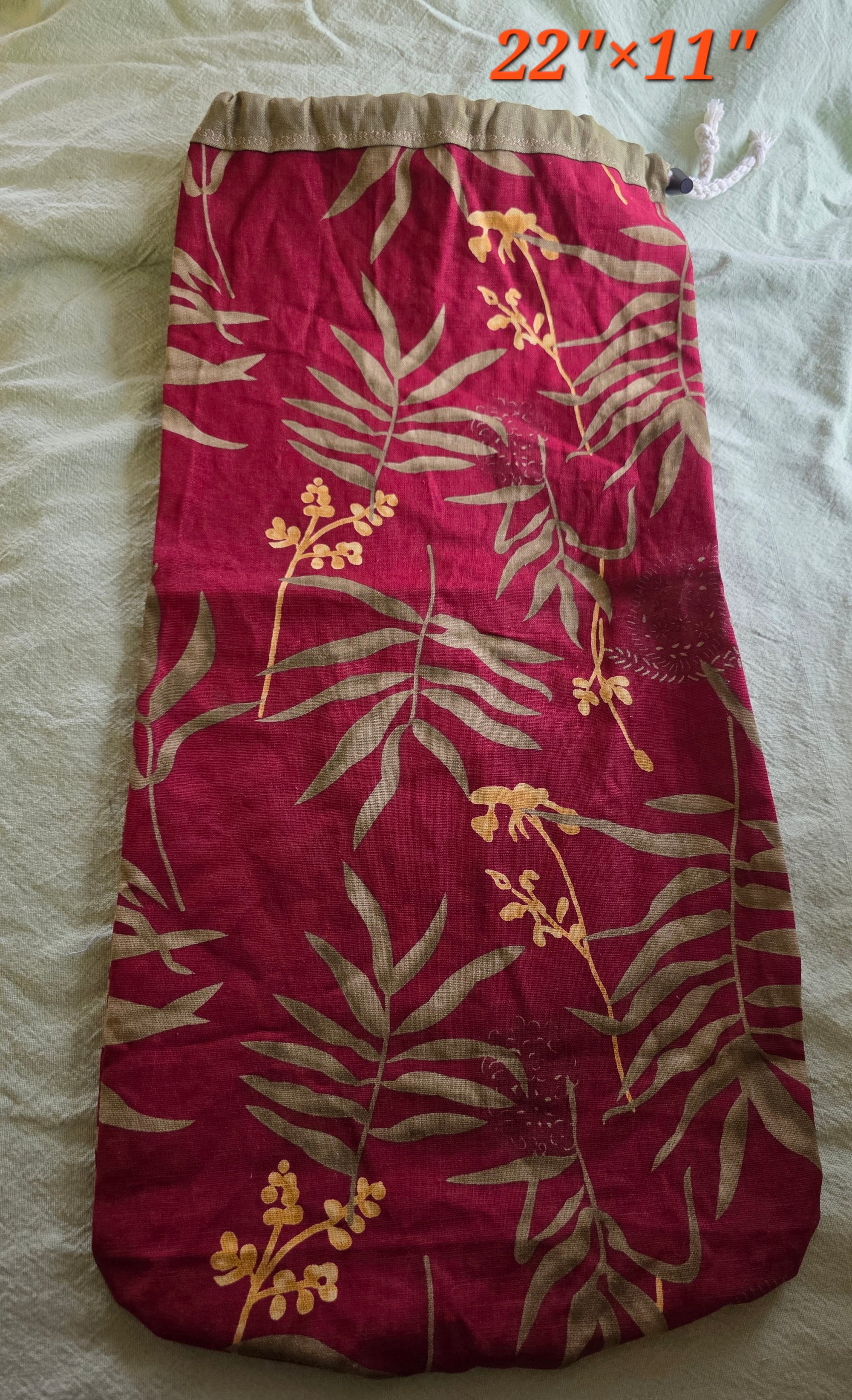 Pure Linen Bread Bag - Olives on Burgundy