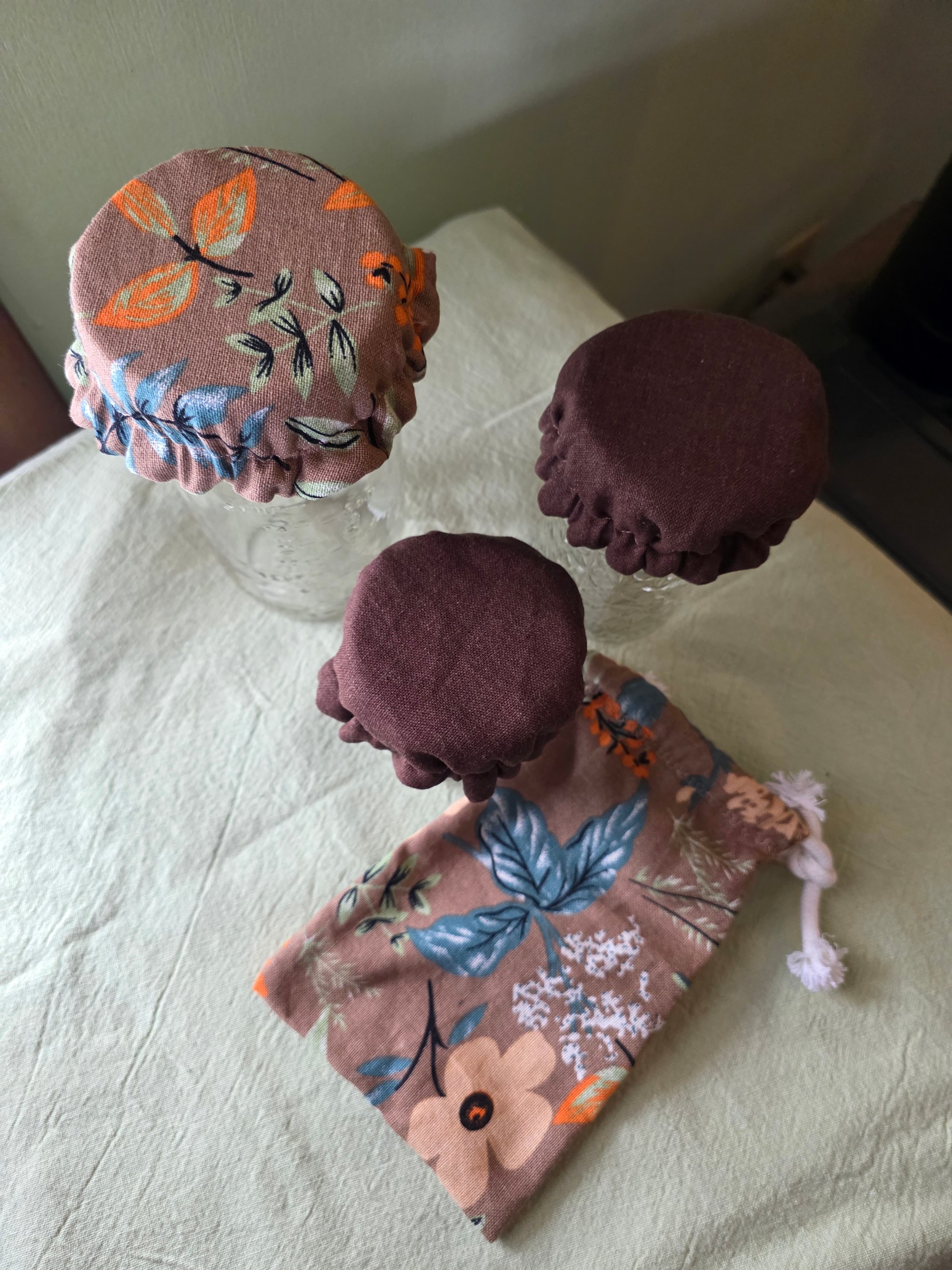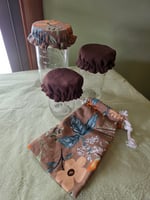 Made from all new 100% linen fabrics, this set includes 3 jar covers with enclosed elastic, that are 100% reversible and fit both "wide mouth" and "regular" canning jars. Excellent for Sourdough starters and other ferments. The drawstring garlic keeper bag has 100% cotton cord, and measures 7"×5"