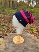 Pure Merino Wool Beanie with Side Snaps - Navy & Pink