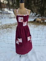 Upcycled Cotton Patchwork Pinafore Apron- Burgundy