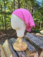 Very Stretchy, made from upcycling a 100% linen lightweight sweater, this headband style headcovering can work for small through XL head sizes, and can be worn in several different styles- from headband to full coverage Headcover.