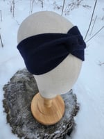 Upcycled Merino Wool Ear Warmer Headband in Navy- S-XXL