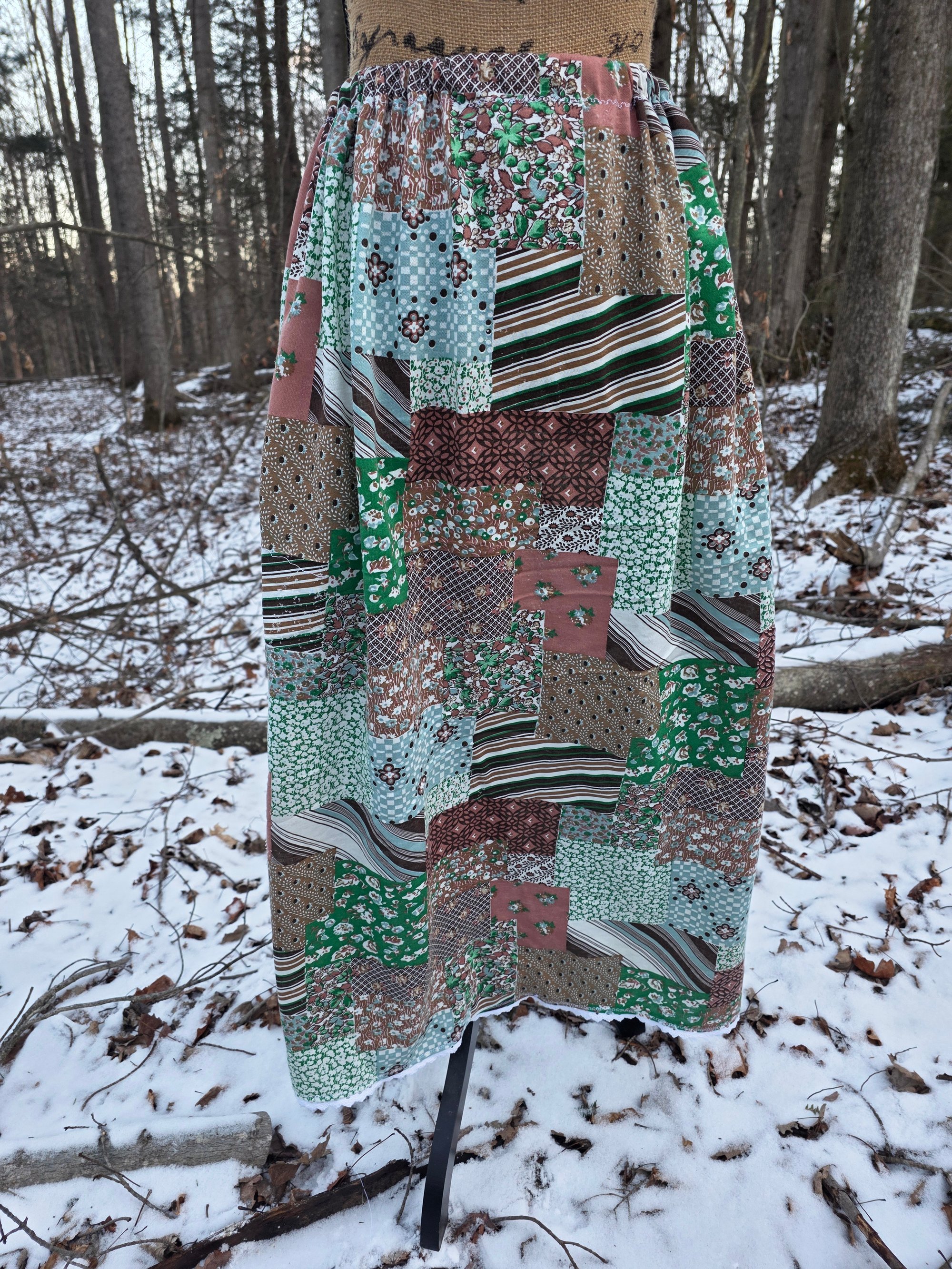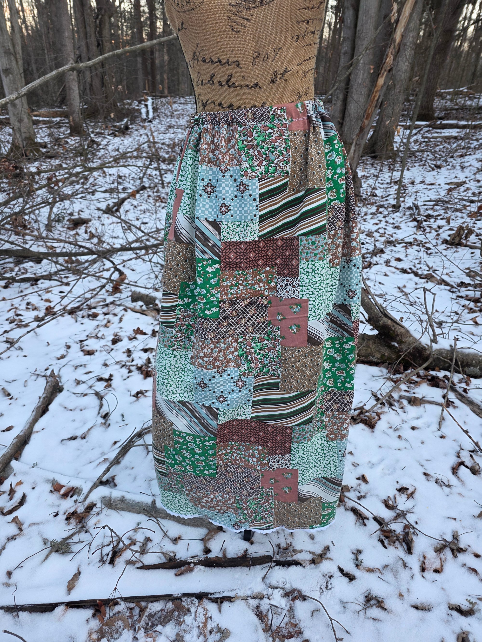 Vintage Cotton Knit Maxi Skirt in Large/XL- Groovy Patchwork