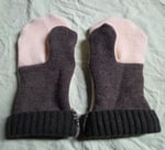 Wool Upcycled Mittens- Adult L-XL- Cream, Olive & Taupe