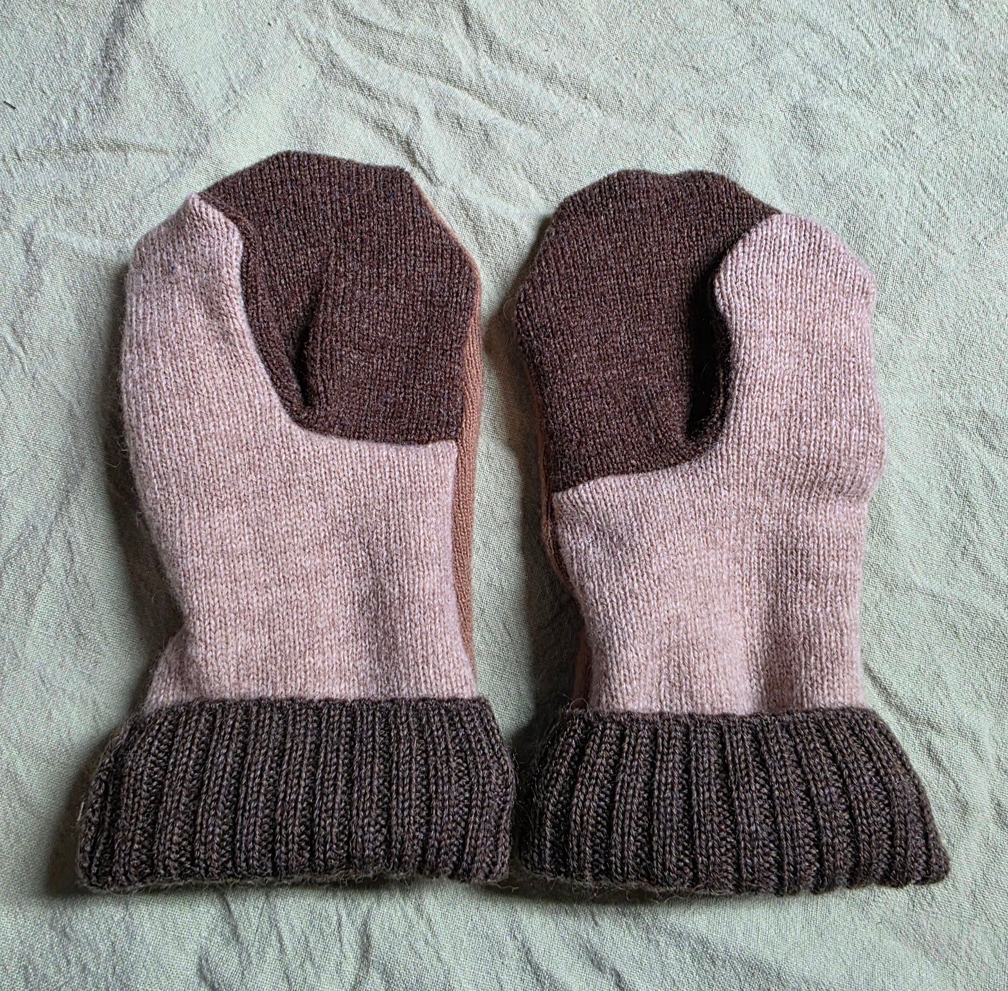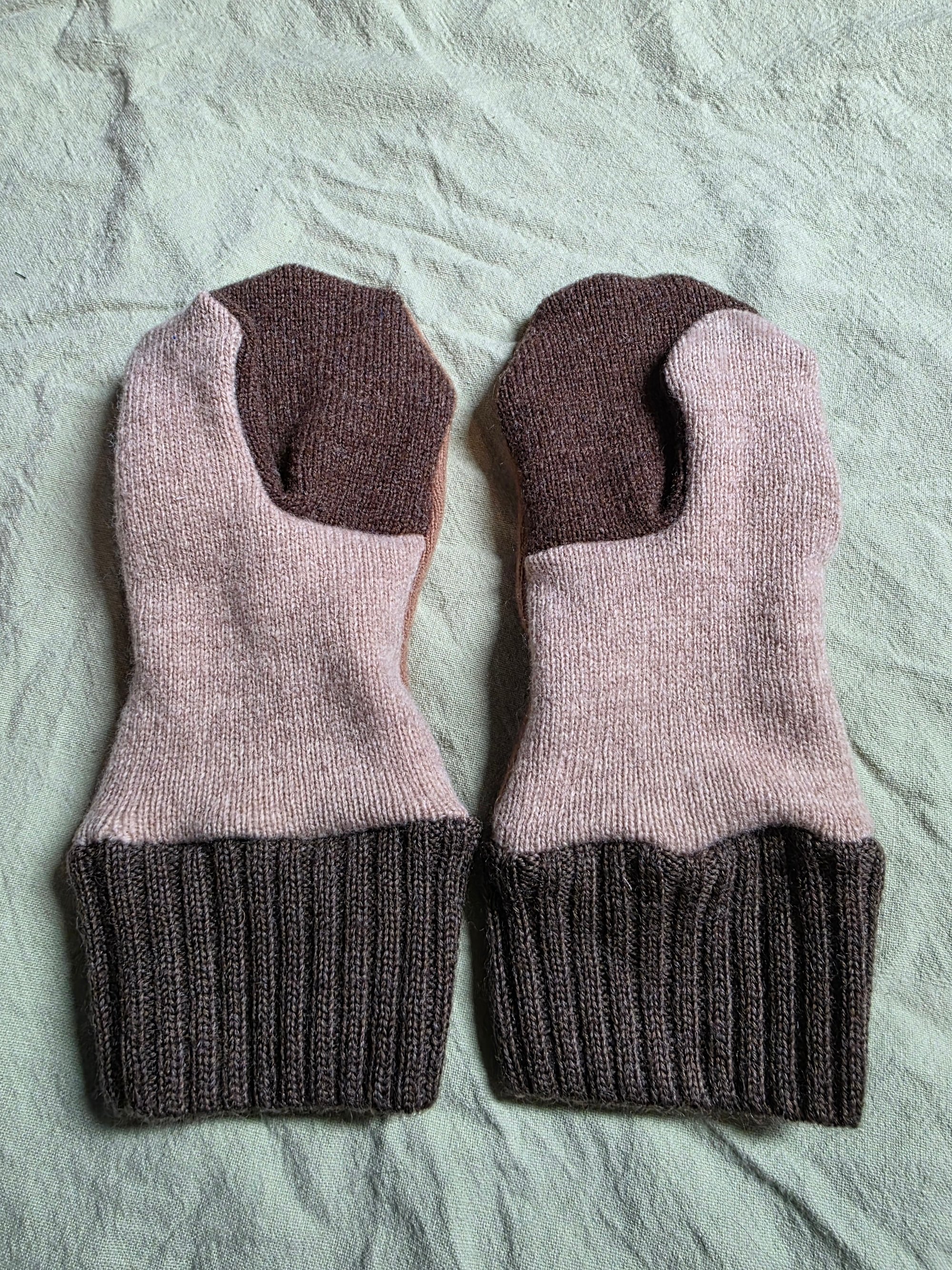 Wool Upcycled Mittens - Adult Medium- Brown & Beige